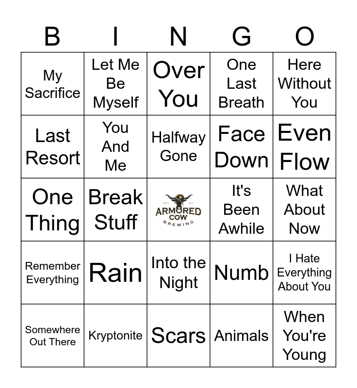This bingo card has a free space and 79 words: Second Chance, Addicted, Over You, Lips Of An Angel, How You Remind Me, Higher, Sorry, Photograph, It's Not Over, Hanging By A Moment, With Arms Wide Open, Far Away, One Last Breath, My Sacrifice, Savin' Me, Last Resort, Whatever It Takes, Rain, When I'm Gone, What About Now, If You Could Only See, Here Without You, One Thing, Halfway Gone, You And Me, Burn It To The Ground, Rockstar, She Keeps Me Up, Paralyzer, Someday, Even Flow, Be Like That, Scars, Drive, Somewhere Out There, It's Been Awhile, Blurry, Without You, If Everyone Cared, When You're Young, Dare You to Move, All Over You, Lightning Crashes, Selling the Drama, Wherever Will You Go, Let Me Be Myself, Let Me Go, Not Meant to Be, Just Like You, Headstrong, I Hate Everything About You, Break Stuff, Numb, In the End, Let Her Cry, Light On, Hero, Meant to Live, All In, Into the Night, Face Down, First Time, Count on Me, Sound of Madness, Cut the Cord, Chop Suey!, The Reason, 3AM, The Diary of Jane, Remember Everything, Kryptonite, Ocean Avenue, Self Esteem, Push, If Today Was Your Last Day, Animals, Cumbersome, Lit Up and Riders On The Storm.