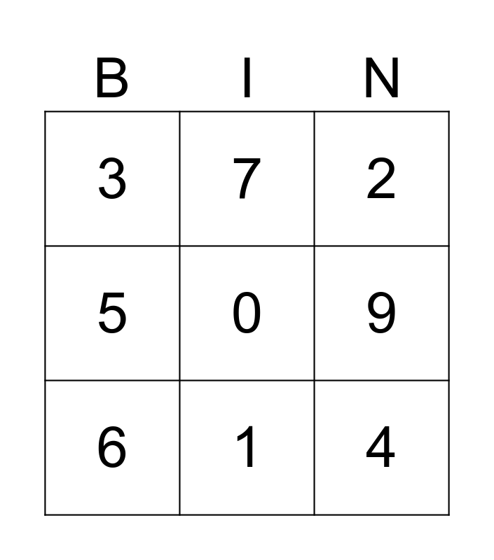 This bingo card has a free space and 10 words: 1, 2, 3, 4, 5, 6, 7, 8, 9 and 10.