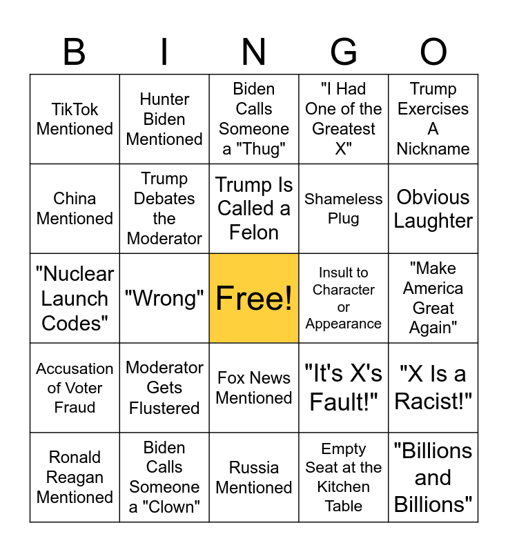 2024 Presidential Debate Bingo | POTUS Debate Bingo II | Presidential Debate | Presidential Debate Bingo | Presidential BINGO with Don