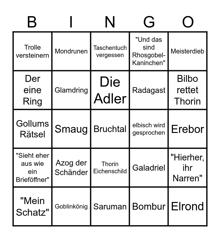 Der Hobbit - Eine unerwartete Reise | Der Hobbit - Eine unerwartete Reise | Der Hobbit - Eine unerwartete Reise | The Hobbit Bingo | Hobbit Bingo
