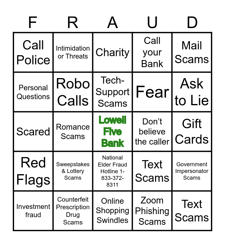 Senior Fraud Presentation | Scam Bingo! | Scam Bingo! | Scam Bingo! | Scam Bingo!