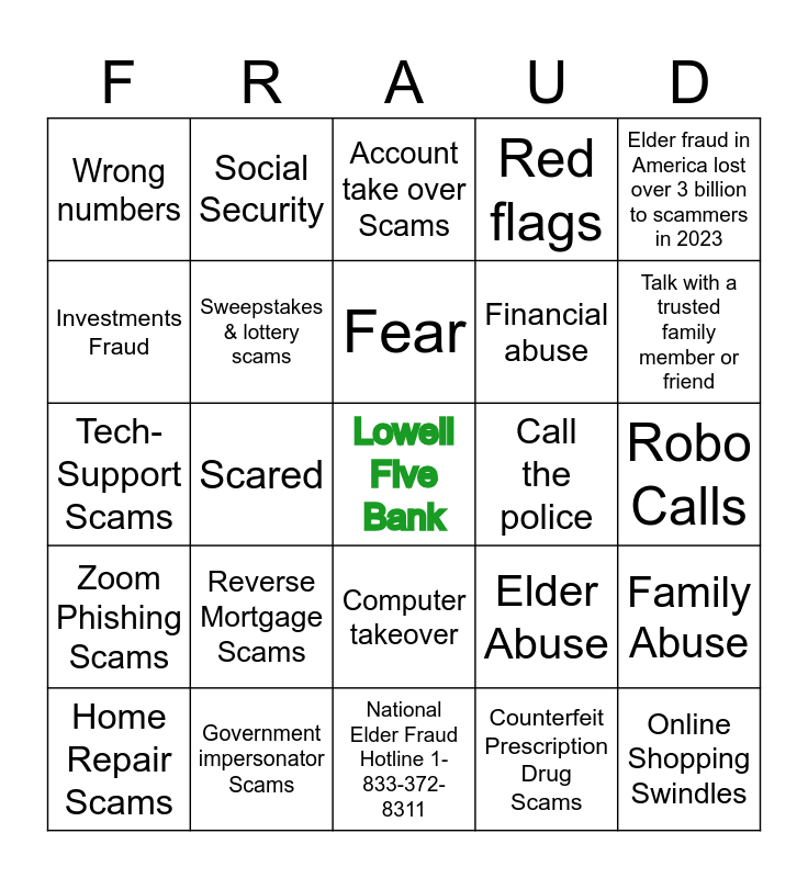 SCAMS, SCHEMES & FRAUDS | ELDER SCAMS/FRAUD/ABUSE | ELDER SCAMS/FRAUD/ABUSE | FRAUD BINGO | Senior Safety Bingo