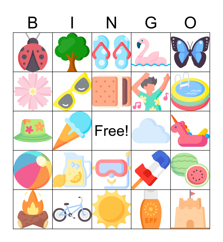This bingo card has 24 images and a free space.