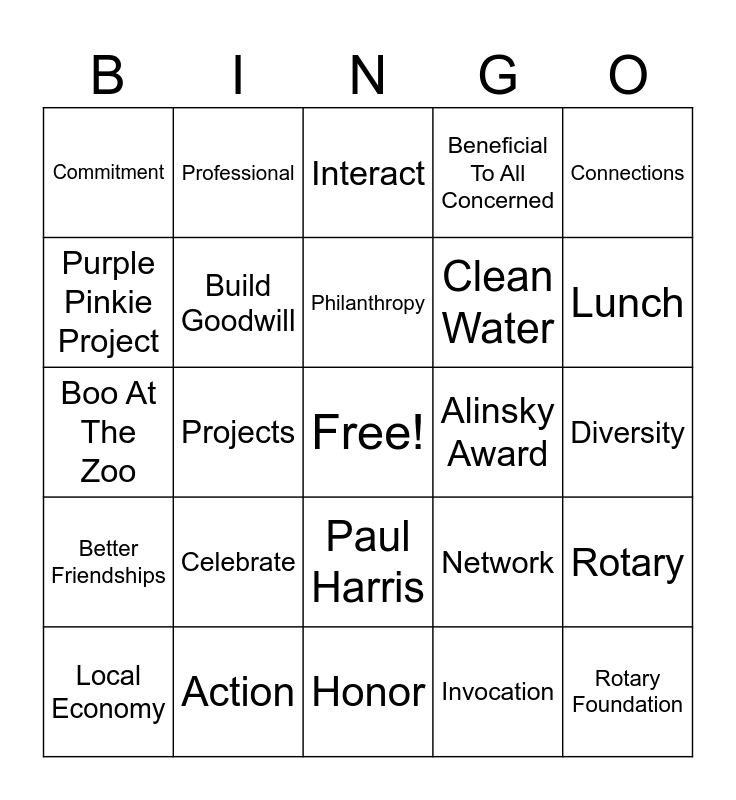 Rotary Club Bingo | Rotary Bingo | Rotary Themes Through The Years | Rotary Themes Through The Years | Rotary Themes Through The Years