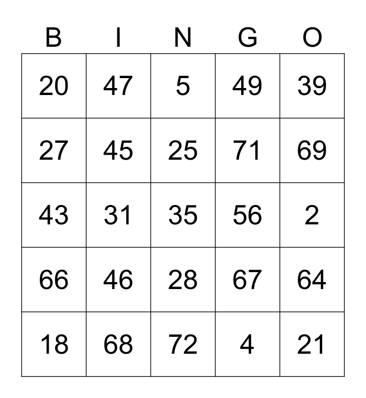 This bingo card has 75 words: 1, 3, 5, 7, 9, 11, 13, 15, 17, 19, 21, 23, 25, 27, 29, 31, 33, 35, 37, 39, 41, 43, 45, 47, 49, 51, 53, 55, 57, 59, 61, 63, 65, 67, 69, 71, 73, 75, 2, 4, 6, 8, 10, 12, 14, 16, 18, 20, 22, 24, 26, 28, 30, 32, 34, 36, 38, 40, 42, 44, 46, 48, 50, 52, 54, 56, 58, 60, 62, 64, 66, 68, 70, 72 and 74.