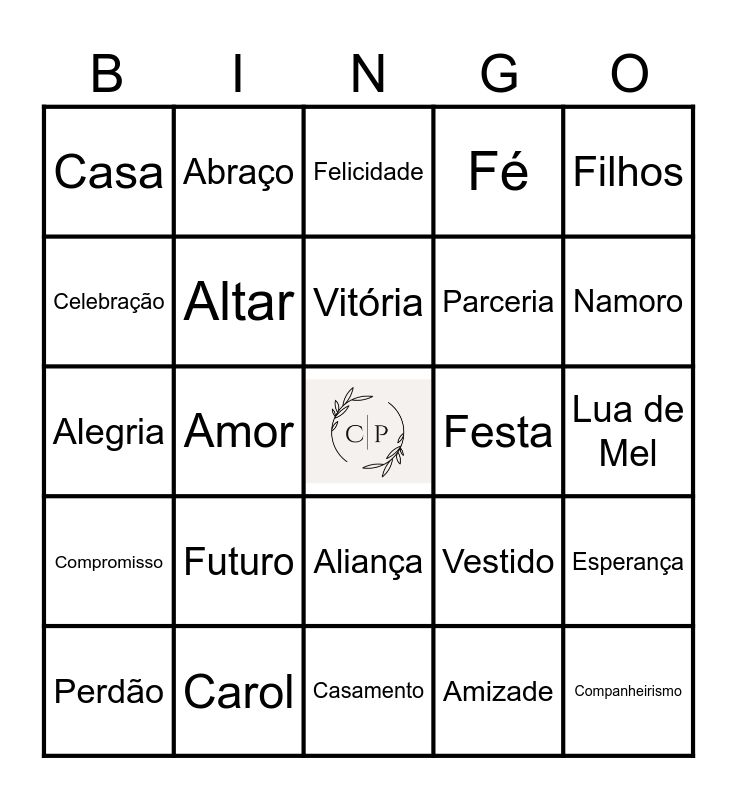 This bingo card has a free space and 30 words: Carol, Paulo Victor, Amor, Família, Casa, Felicidade, Altar, Aliança, Festa, Casamento, Lua de Mel, Companheirismo, Amizade, União, Namoro, Cerimônia, Vestido, Compromisso, Futuro, Filhos, Alegria, Beijo, Abraço, Parceria, Celebração, Fé, Esperança, Perdão, Vitória and Prosperidade.