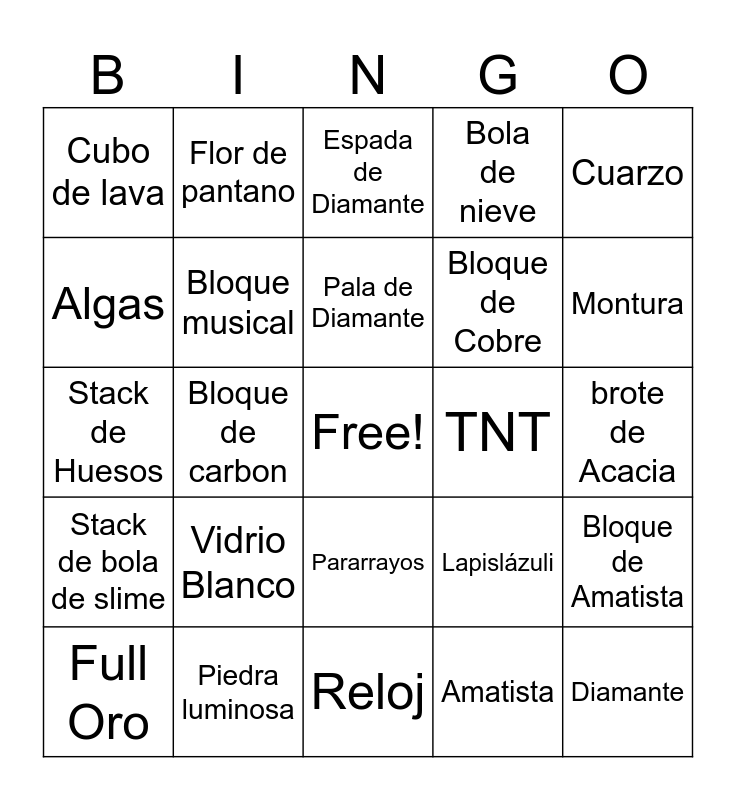 Minecraft bingo | Minecraft bingo | Bingo Cumpleañero | school sucks :) | Spanish Words Bingo