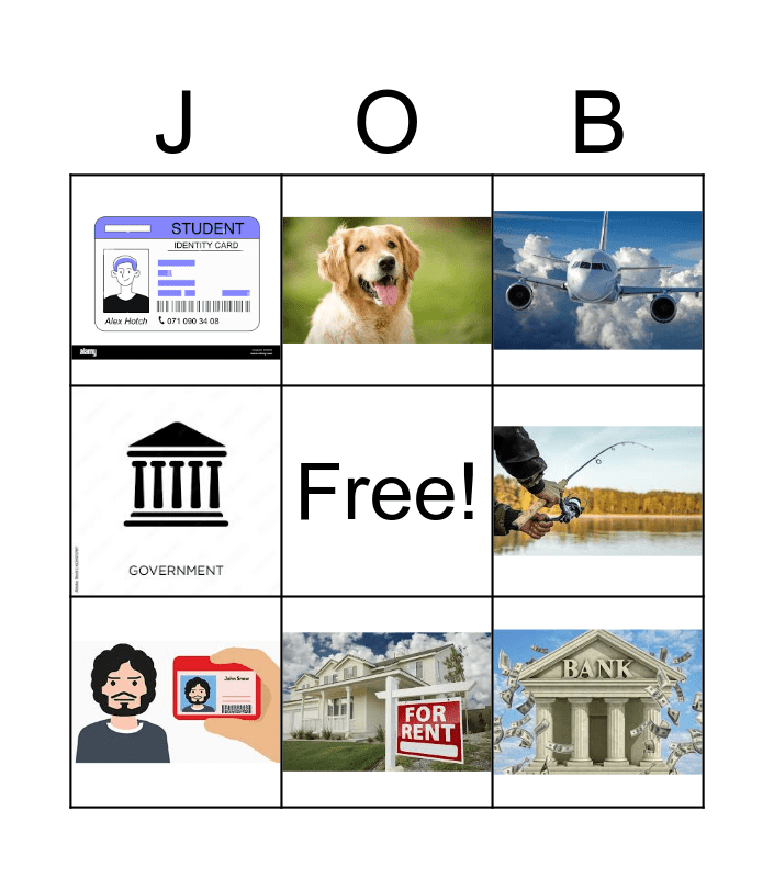 This bingo card has 8 images and a free space.