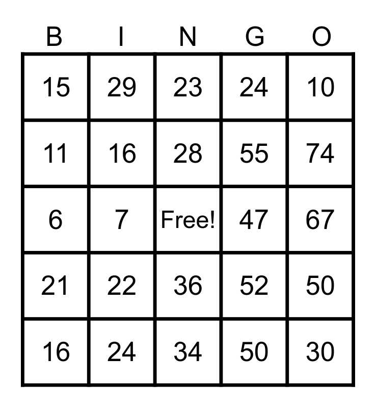 This bingo card has a free space and 130 words: 1, 16, 31, 46, 61, 2, 17, 32, 47, 62, 3, 18, 48, 63, 4, 19, 33, 49, 64, 5, 20, 34, 50, 65, 6, 21, 35, 51, 66, 7, 22, 36, 52, 67, 8, 23, 37, 53, 68, 9, 24, 38, 54, 69, 10, 25, 39, 55, 70, 11, 26, 40, 56, 71, 12, 27, 41, 57, 72, 13, 28, 42, 58, 73, 14, 29, 43, 59, 74, 15, 30, 44, 60, 75, 45, 1, 2, 3, 4, 5, 6, 7, 8, 9, 10, 11, 12, 13, 14, 15, 16, 17, 18, 19, 20, 21, 22, 23, 24, 25, 26, 27, 28, 29, 30, 31, 32, 33, 34, 35, 36, 37, 38, 39, 40, 41, 42, 43, 44, 45, 46, 47, 48, 49, 50, 60, 70, 80, 90 and 100.