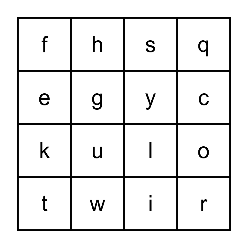 This bingo card has 26 words: a, b, c, d, e, f, g, h, i, j, k, l, m, n, o, p, q, r, s, t, u, v, w, x, y and z.