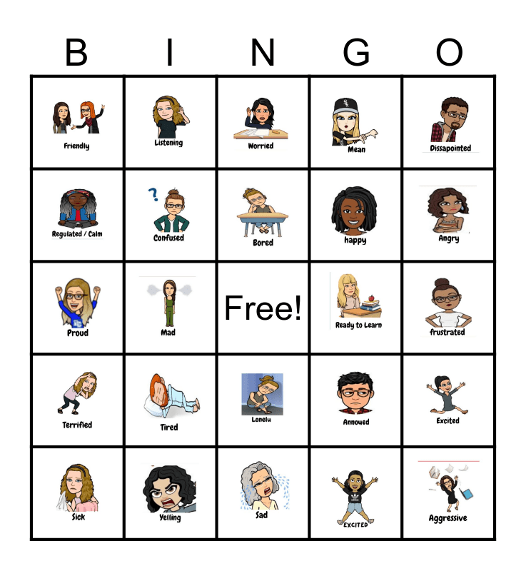 This bingo card has 25 images and a free space.