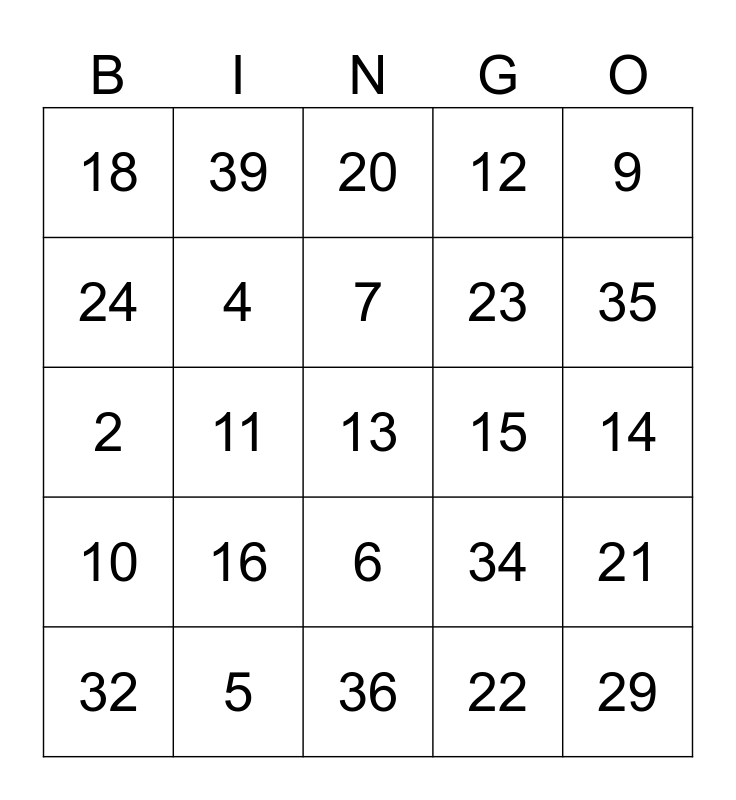 This bingo card has 40 words: 1, 2, 3, 4, 5, 6, 7, 8, 9, 10, 11, 12, 13, 14, 15, 16, 17, 18, 19, 20, 21, 22, 23, 24, 25, 26, 27, 28, 29, 30, 31, 32, 33, 34, 35, 36, 37, 38, 39 and 40.