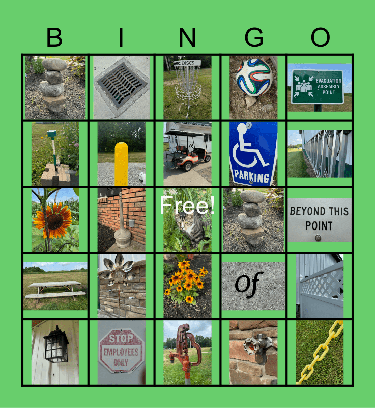 This bingo card has 25 images, a free space and 1 words: "Progress not perfection".