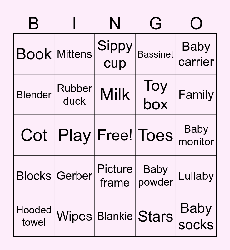 ⚠ This card has duplicate items: Cot (2), Stroller (2), Baby monitor (2), Baby lotion (2), Towel (2), Playpen (2), Bassinet (2), Mobiles (2), Baby socks (2), Gerber (2), Book (2), Onesie (2), Shampoo (2), Cradle cap (2), Diaper bag (2), Burp cloth (2), Picture frame (2), Bottle rack (2), Pacifier (2), Mittens (2), Hooded towel (2), Sippy cup (2), Bathtub (2), Sleep sack (2), Booties (2), Blocks (2), Wipes (2), Baby carrier (2), Formula (2), Rattle (2), Family (2), Milk (2), Play (2), Peek-a-boo (2), Cry (2), Sleep (2), Nap (2), Mom (2), Brother (2), Dad (2), Minivan (2), It's a girl (2), Blender (2), Crawl (2), Sit (2), Spit up (2), Toes (2), Stars (2), Lullaby (2)