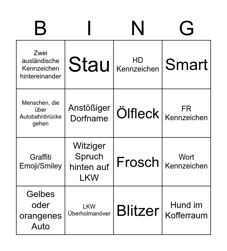 Achtung Stau | Autofahrt Bingo | Sackgassen Bingo of Doom | Autobahn | Autobahn Bingo