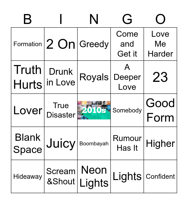 This bingo card has a free space and 34 words: On the Floor, Lights, Boom Clap, Cool Kids, Blank Space, Drunk in Love, Love Me Harder, Hideaway, 2 On, Ain't It fun, Royals, Greedy, Sissy that Walk, Bodak Yellow, Somebody, 23, Scream &Shout, Lover, Juicy, Rumour Has It, Boombayah, 212, Formation, Good Form, Neon Lights, Confident, Come and Get it, Me & My Girls, A Deeper Love, Truth Hurts, Out of My Head, True Disaster, Higher and Boys.