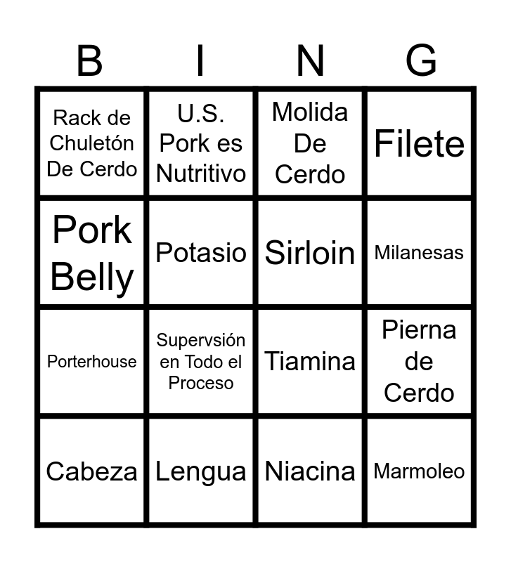 U.S. Pork Lotto | Meat and Poultry Spanish Words | U5L2 | Carnes y Mariscos | Food Bingo