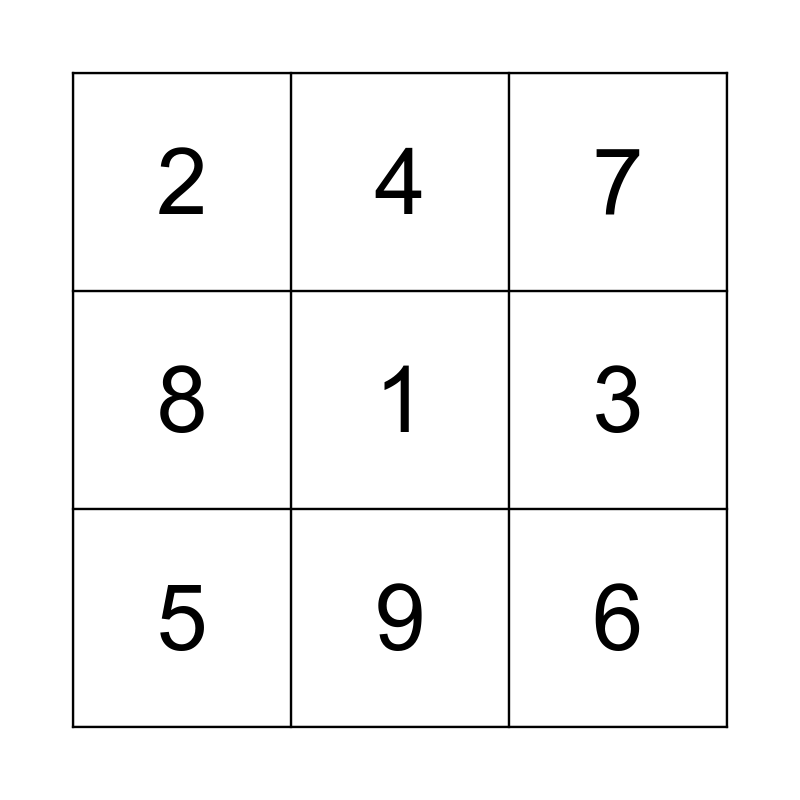 This bingo card has 9 words: 5, 7, 4, 8, 2, 3, 1, 6 and 9.