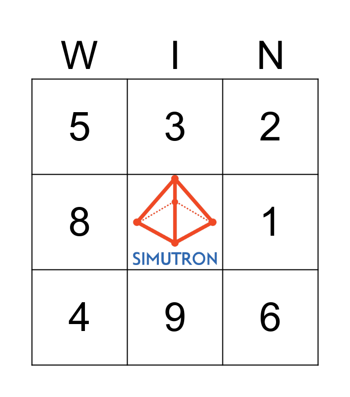 This bingo card has a free space and 8 words: 1, 2, 3, 4, 5, 6, 8 and 9.