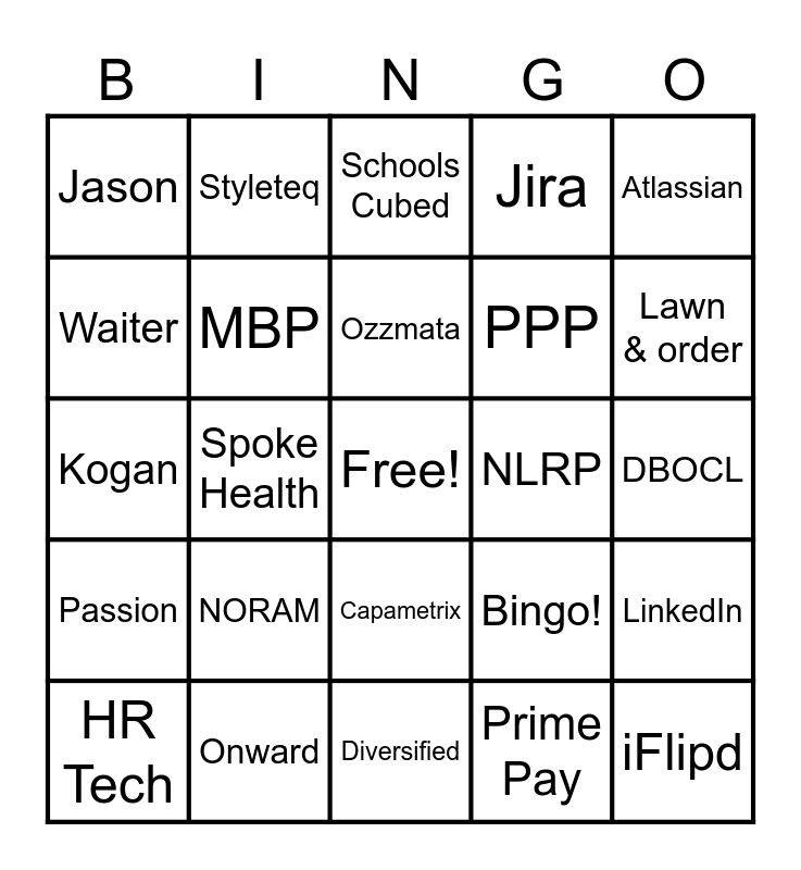 This bingo card has a free space and 73 words: Chromedia, Software, Jason, Fuel Digital Velocity, Innovation Culture, Engineering Mindset, Passion, GCash, Bingo!, Greg, Fluid Gifts, Nester, MBP, DBOCL, TMT, Styleteq, Diversified, Waiter, Cruisebound, NLRP, Ozzmata, Jira, Atlassian, Workspace, HR Tech, ContractsRX, Help Desk, Gymguyz, Holy Yoga, Kidough, Onward, MRIoA, Yippiekiyay, StarSmilez, Spoke Health, Vixens & Angels, Healthcare Abroad, Medtrip, iFlipd, Sync HR, Prime Pay, NORAM, Locatrix, Fanzeem, Hyphen, PPP, Schools Cubed, Estrellita, Voucher, Kogan, Cambium Networks, Udemy, Scrum, Agile, Sprint Planning, Retrospective, Loopcare, Capametrix, Chronomedia, CEF, Geolens, HSA, Lean Logic, Lawn & order, Nephos, TCA, Jetbrains, Adobe, LinkedIn, Screencastify, Bangkok, Slack and GMeet.