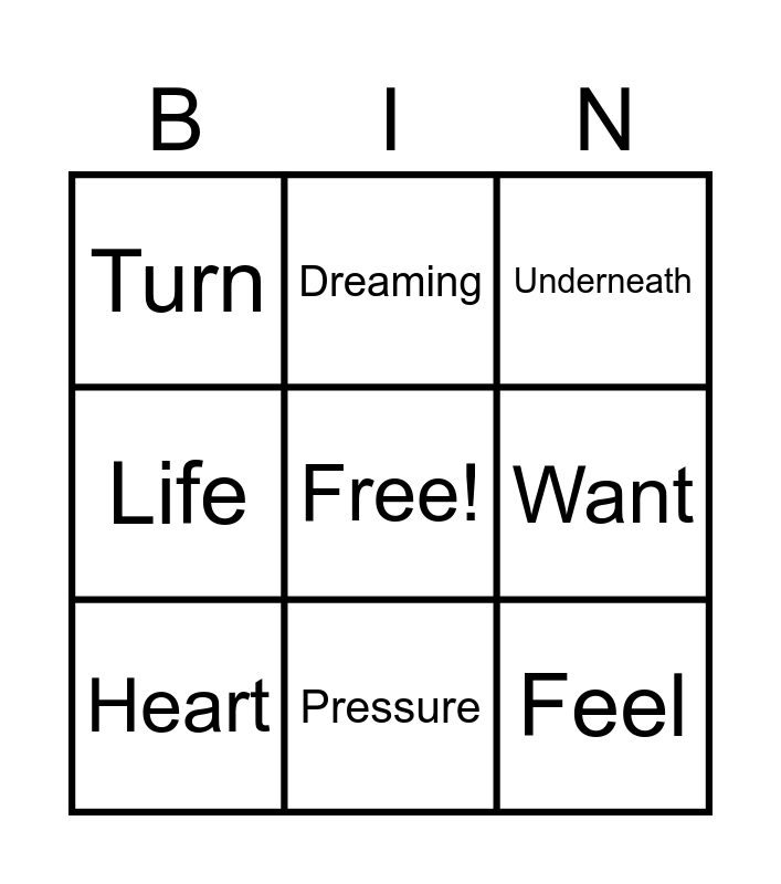 This bingo card has a free space and 40 words: Magic, Dream, Legends, Heart, Alive, Diamonds, Pressure, Weight, Feel, Together, Adventure, Life, Share, Believe, Shine, Everyday, Make, Turn, Say, Underneath, Again, You, Everything, Want, This, Oh, Me, Feelings, Energy, Time, Moment, Celebrate, Joy, Love, Hope, Light, Rise, Change, Dreaming and Alive again.