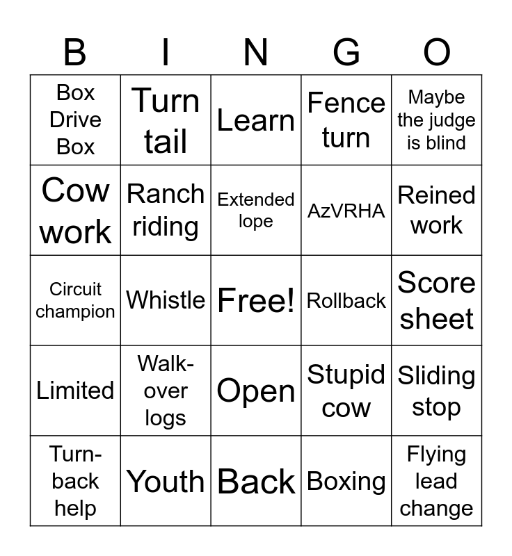 Ranch Horse Bingo | Fedullo Bingo | Horse Terms | How Was Your Break? | Woody's Bingo