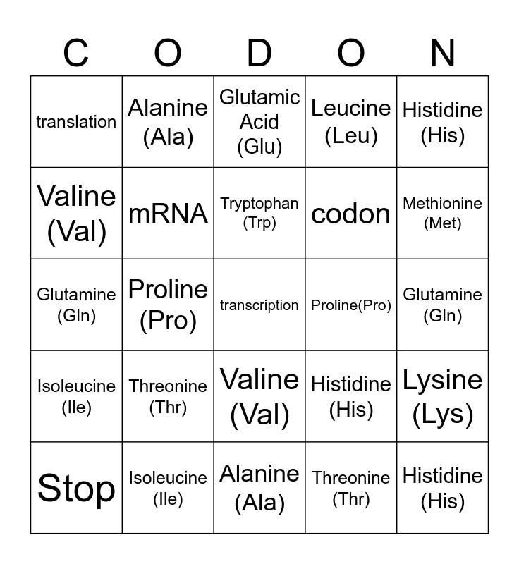 Codon Bingo | Codon Bingo | Codon Bingo | CODON BINGO! | CODON BINGO!