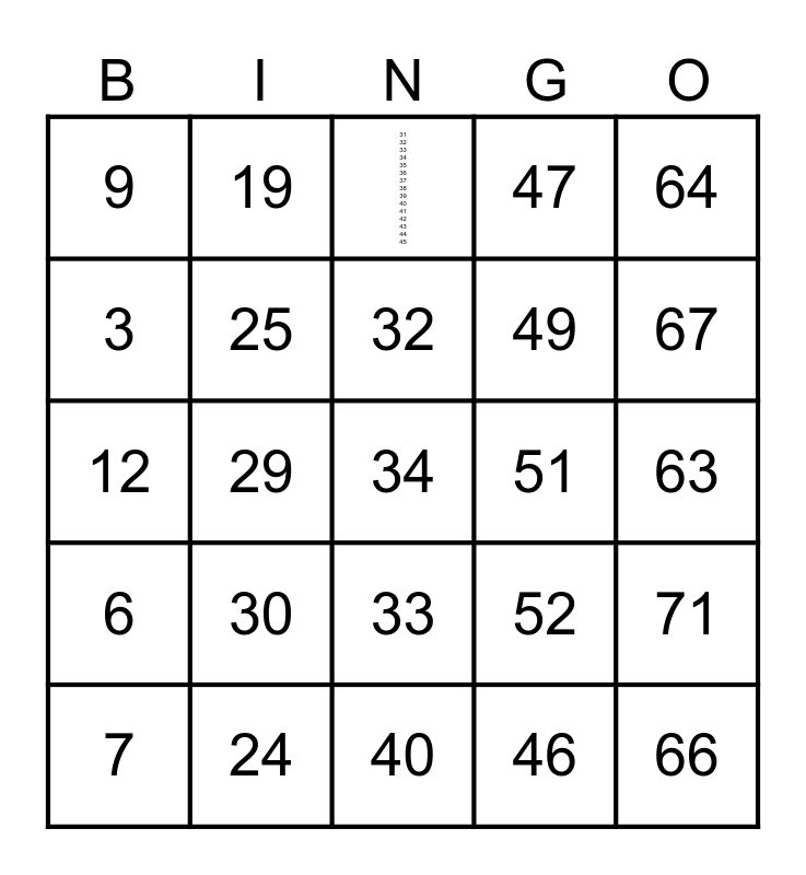 This bingo card has 80 words: 1 2 3 4 5 6 7 8 9 10 11 12 13 14 15, 16 17 18 19 20 21 22 23 24 25 26 27 28 29 30, 31 32 33 34 35 36 37 38 39 40 41 42 43 44 45, 46 47 48 49 50 51 52 53 54 55 56 57 58 59 60, 61 62 63 64 65 66 67 68 69 70 71 72 73 74 75, 1, 16, 31, 46, 61, 2, 17, 32, 47, 62, 3, 18, 33, 48, 63, 4, 19, 34, 49, 64, 5, 20, 35, 50, 65, 6, 21, 36, 51, 66, 7, 22, 37, 52, 67, 8, 23, 38, 53, 68, 9, 24, 39, 54, 69, 10, 25, 40, 55, 70, 11, 26, 41, 56, 71, 12, 27, 42, 57, 72, 13, 28, 43, 58, 73, 14, 29, 44, 59, 74, 15, 30, 45, 60 and 75.
