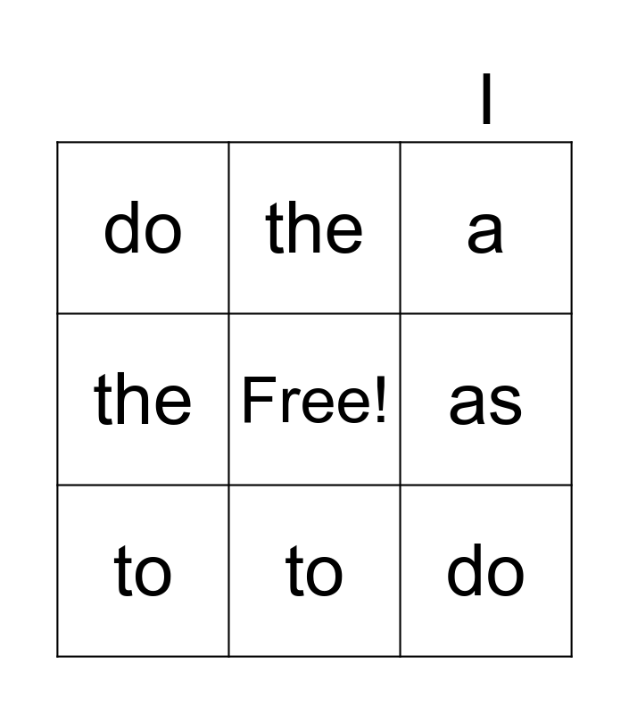 This bingo card has a free space and 8 words: as, a, the, to, do, do, the and to.