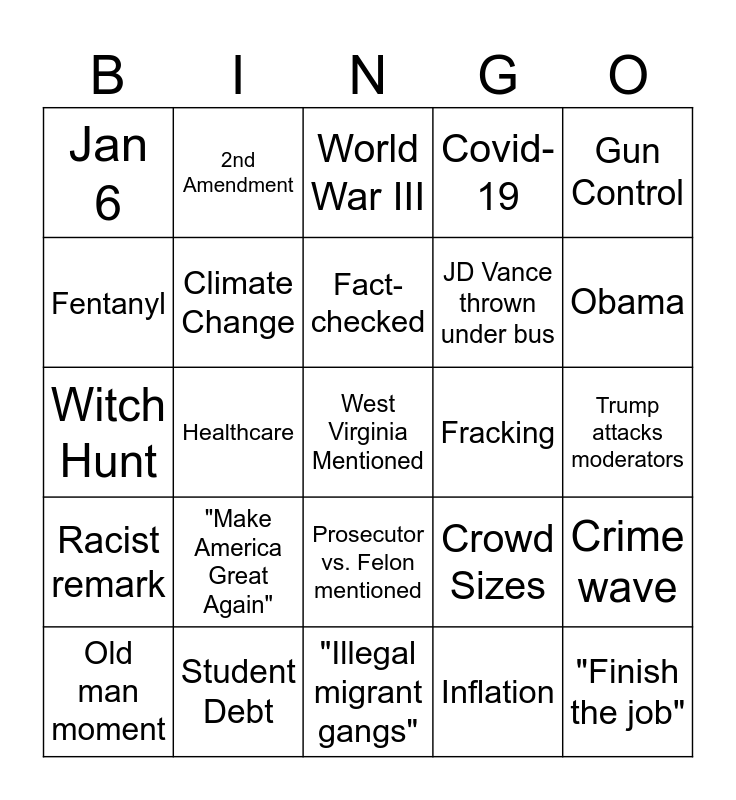 Debate Bingo | Harris/Trump Debate Bingo | Debate Bingo | 2024 Presidential Debate Bingo | Debate Bingo