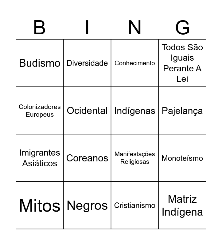 Combate ao racismo | BINGO - ENSINO RELIGIOSO | BINGO - ENSINO RELIGIOSO | BINGO - ENSINO RELIGIOSO | Vida acadêmica