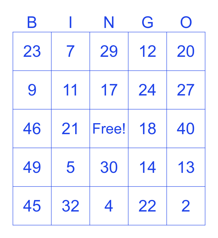 This bingo card has a free space and 50 words: 1, 2, 3, 4, 5, 6, 7, 8, 9, 10, 11, 12, 13, 14, 15, 16, 17, 18, 19, 20, 21, 22, 23, 24, 25, 26, 27, 28, 29, 30, 31, 32, 33, 34, 32, 36, 37, 38, 39, 40, 41, 42, 43, 44, 45, 46, 47, 48, 49 and 50.