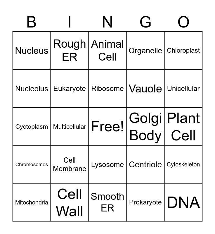 Types of Cells and their Organelles | CELL BINGO | CELL BINGO | Cell Parts | Cell Parts