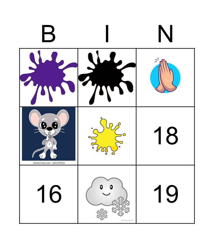This bingo card has 12 images, a free space and 11 words: 20, 7, 19, 18, 15, 11, 13, 12, 16, 4 and 14.