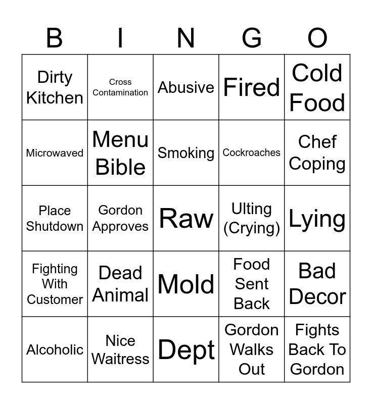 Kitchen Nightmares Bingo | Kitchen nightmare bingo | Kitchen Nightmares | kitchen nightmares bingo | Kitchen nightmares