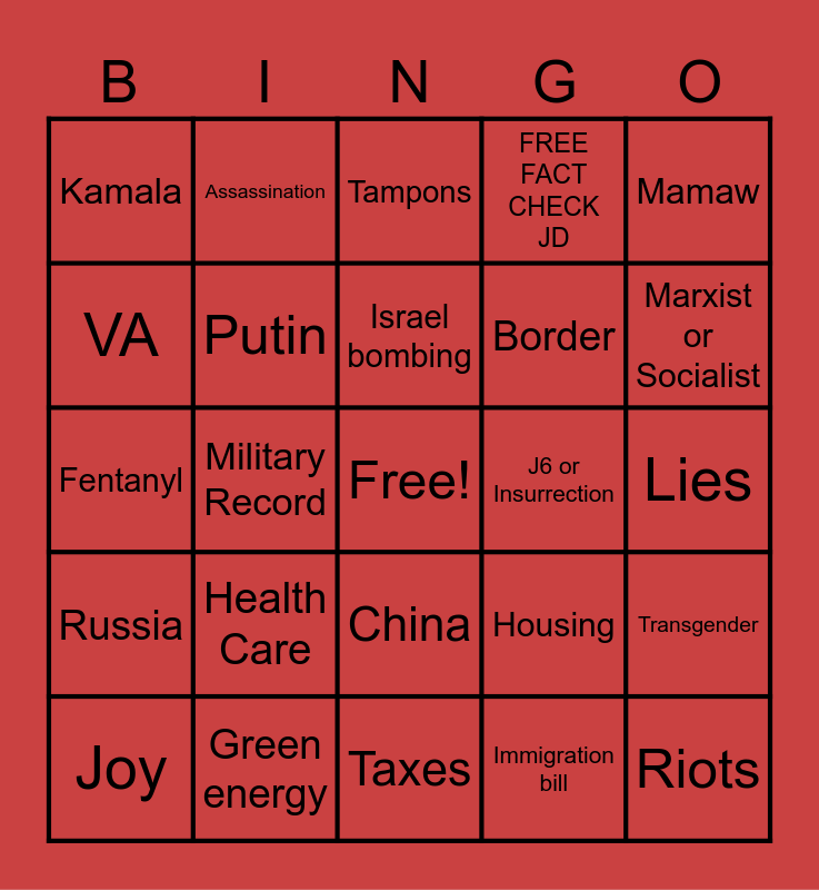 JD VANCE / Tim Walz Debate | JD VANCE / Tim Walz Debate Bingo | VP Debate 2024 | VP Debate | VP Debate
