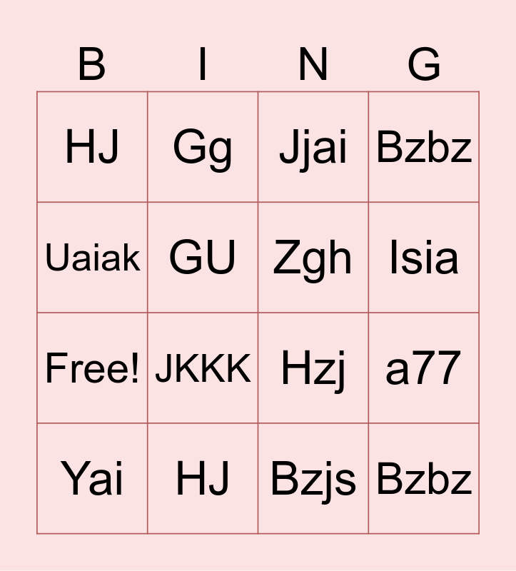 This bingo card has 24 words: Jisun, Serve, Bzjs, Bzbz, HJ, Gg, Zgh, Bzbz, Free!, HJ, Hzj, Isia, HzH, Hzhz, Hzj, Jzj, Yai, GU, 6U, a77, Uaiak, JKKK, Jjai and Uia.