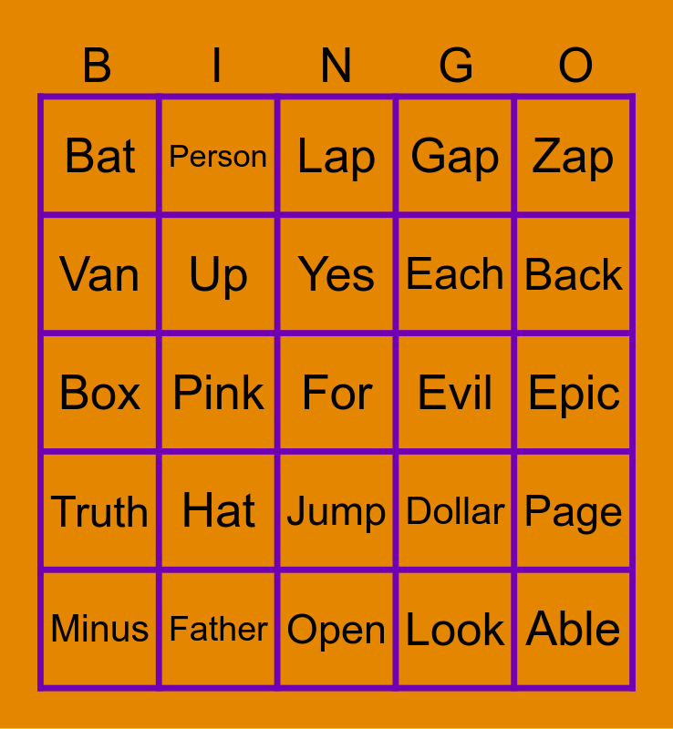 This bingo card has 80 words: Tan, Sat, Lap, Nap, Add, Rip, Man, Fin, Dot, Itch, Pan, Cat, Gap, Bat, Odd, Van, Kit, Hat, Win, Epic, Jam, Zap, Box, Yes, Up, Quiz, Long, Ship, Chin, Thin, Back, Is, Open, Able, Minus, Evil, Unit, Her, Far, For, Turn, Bird, Puddle, Problem, Along, Person, Easily, Story, Piano, City, Page, Pink, Dollar, Like, Name, Home, Use, These, Called, Jump, Each, See, Piece, Key, Ravine, Out, Now, Rain, Day, Too, Truth, Father, My, Show, Coat, Toe, Look, Give, Pause and Saw.