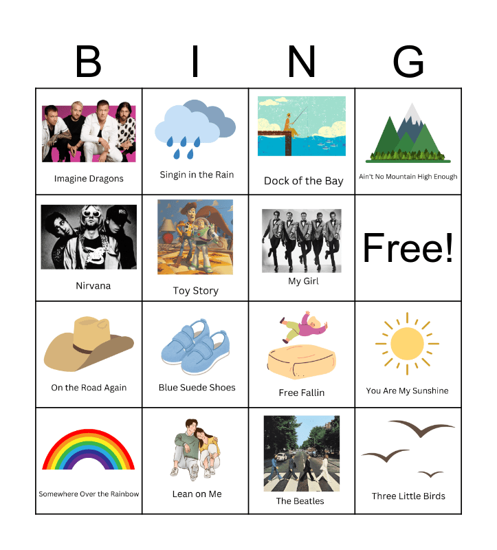This bingo card has 17 images and 1 words: Free!.