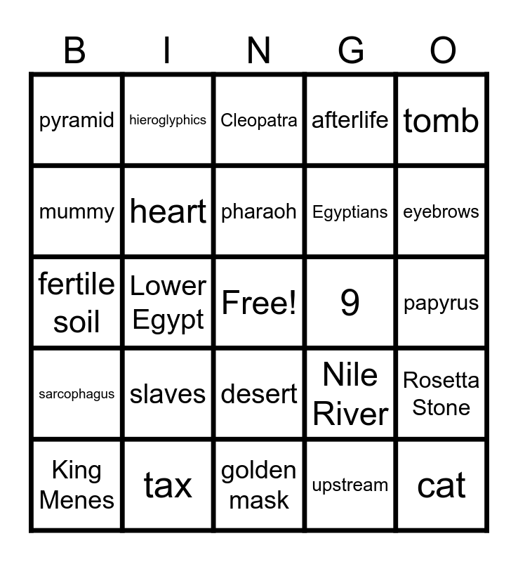 Ancient Egyptian Bingo | Ancient Egypt Bingo | Egypt | Egypt | Egypt