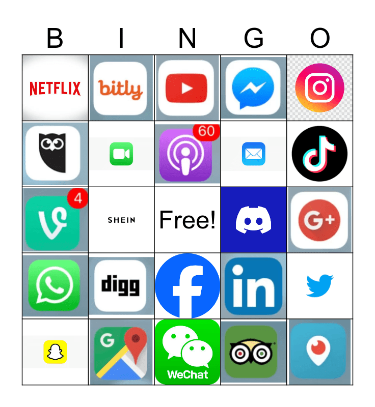 This bingo card has 24 images and a free space.