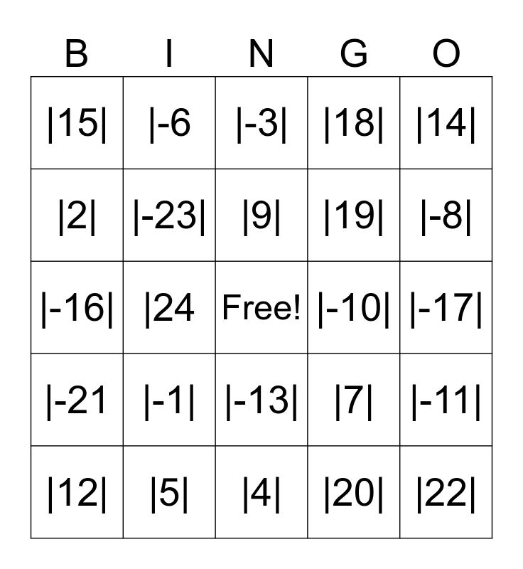 This bingo card has a free space and 24 words: |-1|, |5|, |9|, |12|, |14|, |15|, |2|, |-6, |-10|, |-13|, |19|, |-16|, |7|, |-11|, |-23|, |20|, |-17|, |-3|, |-8|, |24, |22|, |-21, |18| and |4|.