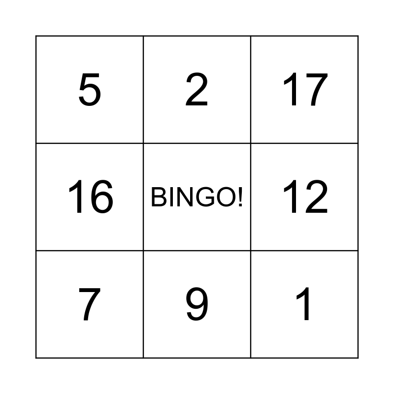 This bingo card has a free space and 20 words: 11, 14, 17, 8, 20, 1, 13, 5, 10, 2, 3, 4, 12, 6, 7, 15, 9, 16, 18 and 19.