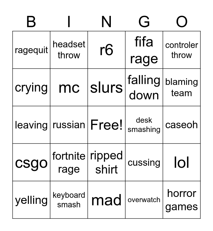 gamer rage binger / goal: blackout | Gamer Rage Bingo | gamer rage | Gaming rage | Gaming rage