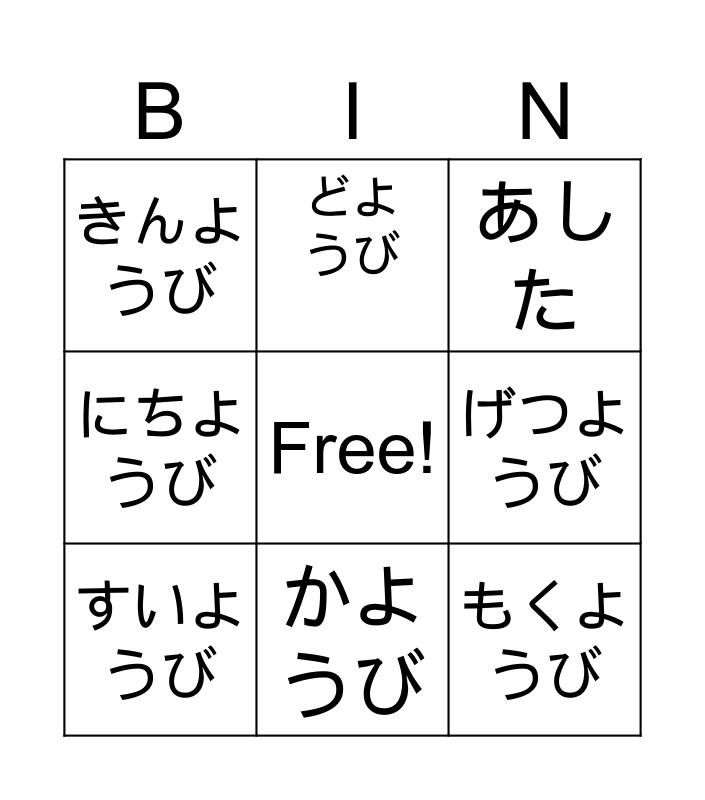 Nan youbi? | Days of the Week | Weather Words | 日本語びんご | ひらがなビンゴ1