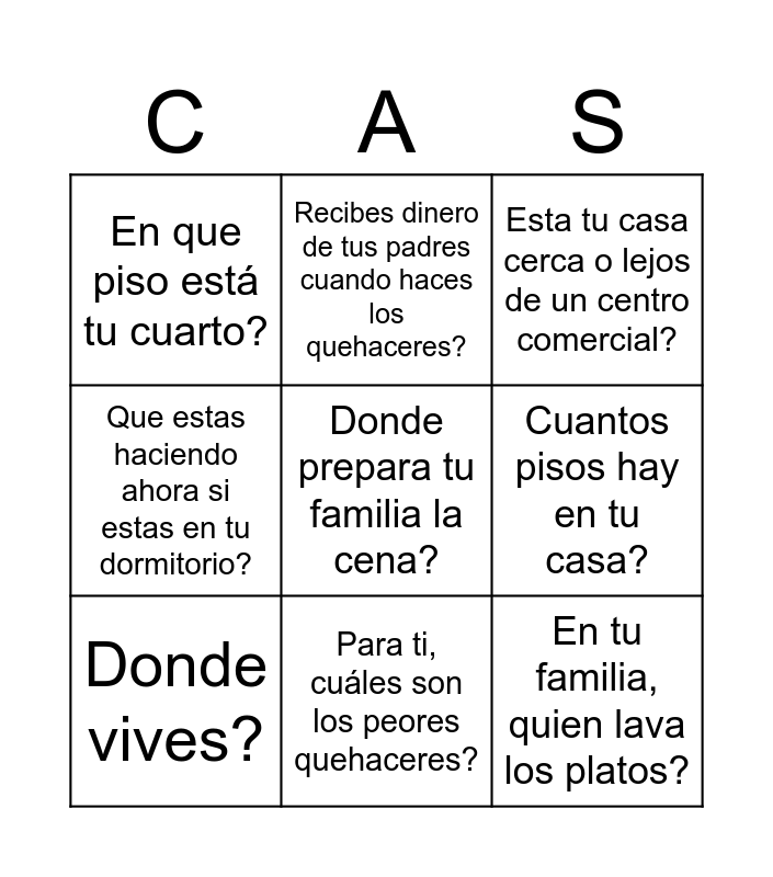 Casa | Chapter 5 part 1 | Chapter 5 part 1 | Oral Exam Bingo Unit 2 | EXPRESIONES