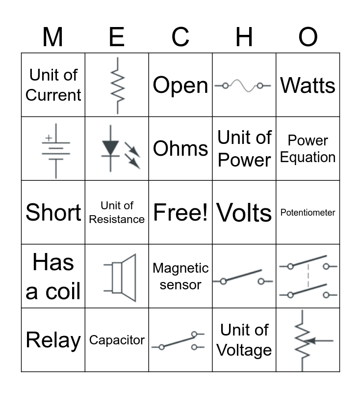 Electronic Symbols and Concpets | Electronic Sensors, Symbols, and Concepts | Win by Vertical/Horizontal/Diagonal | ELECTRICAL BINGO | Schematic Bingo