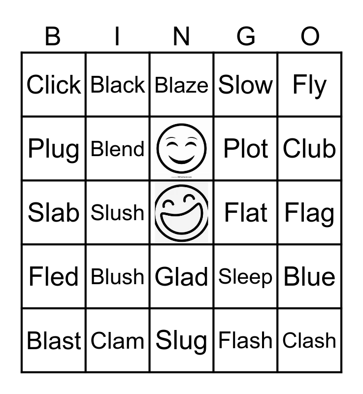 This bingo card has 1 images, a free space and 28 words: Blast, Splash, Slush, Blab, Click, Blaze, Blend, Blush, Flat, Clam, Flag, Clash, Slug, Flash, Club, Flavor, Glad, Fled, Fly, Slab, Sleep, Plan, Plot, Plug, Slow, Black, Blue and Please.