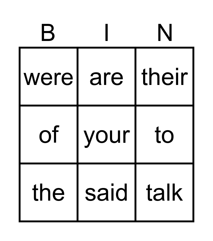 This bingo card has 16 words: goes, says, their, were, talk, are, was, what, your, to, do, of, from, said, the and walk.