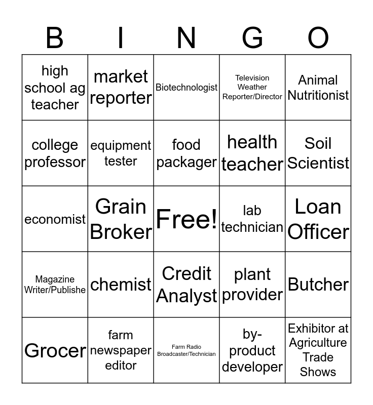 Careers Bingo | ag cr | Agriculture Career | Agriculture Careers | Agiculture Careeres